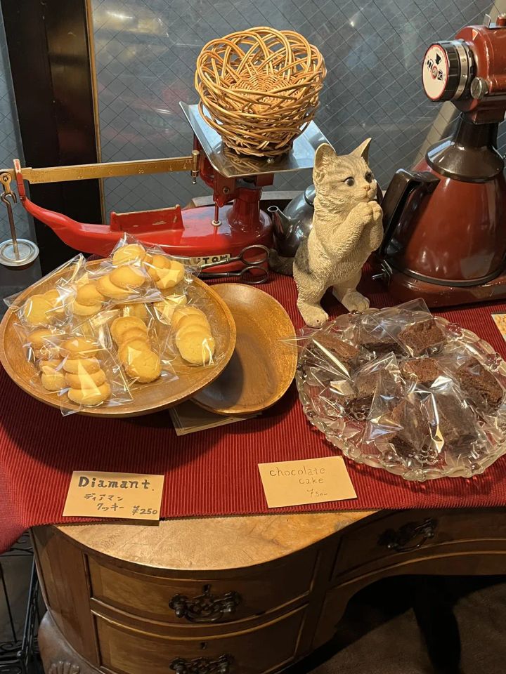 入り口を入ってすぐに置いてあるエレガントなチェスト上には、焼き菓子がずらり。