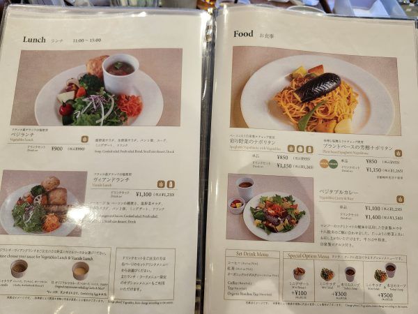 11:00-15:00のランチタイム限定メニューとして、温野菜サラダ、生野菜サラダ、スープ、パン、ミニデザートに、ドリンクがセットになった「ベジランチ」(990円)、ソーセージ&ベーコンの網焼きがついた「ヴィアンドランチ」(1210円)があります。