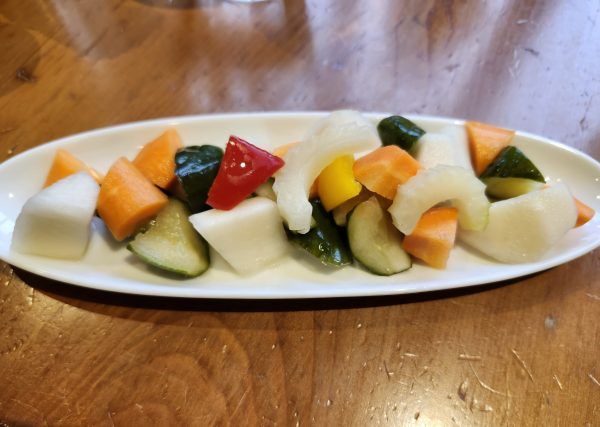 「自家製ピクルス」(385円)は、甘さと酸っぱさのバランスが最高で、パリッとした食感の瑞々しいお野菜が魅力的です。