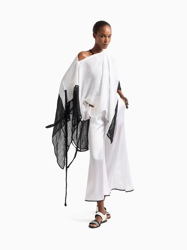 カラーパレットは、白の静けさ、エクリュの温もり、黒の深淵など洗練を極めたミニマルな配色が印象的。海辺の光と影を映すかのように、シルエットに静かな余韻を添えている。