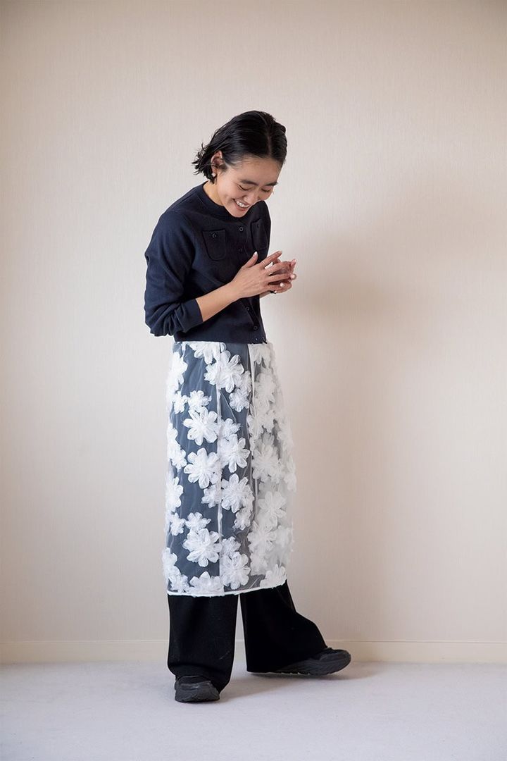 「この春は買わなきゃいけないのよ」と、レース、リボン、チュール……etc.ガーリーアイテム推しの綾さん。「もともと好きなテイストが今季のトレンドで、展示会でもたくさん見かけて嬉しい限り」と大興奮のご様子。基本はモノトーンで、大人がリアルに取り入れやすいものをピックアップしてもらいました。