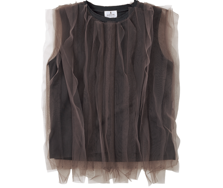 チュールトップス¥19,800、中のトップス¥23,100(共にイウエン マトフ/ユナイテッドアローズ 渋谷スクランブルスクエア店)