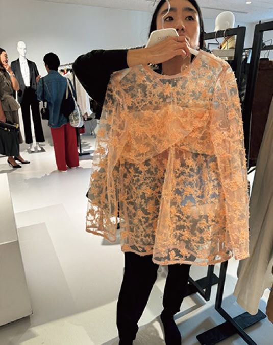 春は入学式などのシーズンということもあり、展示会にもセレモニー向けのアイテムがズラリ。シンプルイズベスト、かと思いきや、綾さん的にはそれだと少し物足りないようで……。「もう、コスプレだと思って楽しんだもん勝ち」だそう。自分にとっても節目となる服、迷ったらこれを選んで。