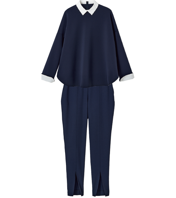 「襟付きでまるでレイヤードしているかのように見えるトップス。袖も折り返すと白になる仕様。わざわざ重ね着しなくてもいいし、ウォッシャブルなところも◎」