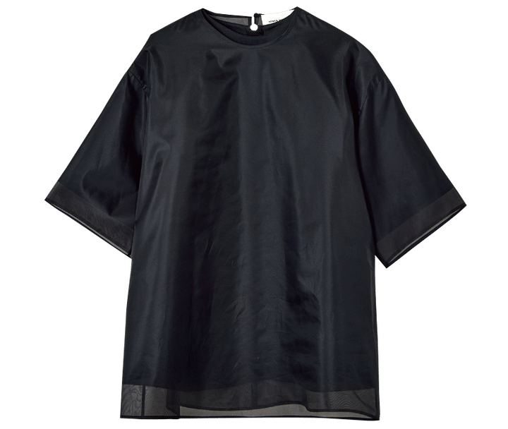 「ハリのあるトップスとチュールトップスをレイヤリングしたい気分。手持ちのTシャツもチュールを重ねることで、今年っぽく新鮮に着られます」