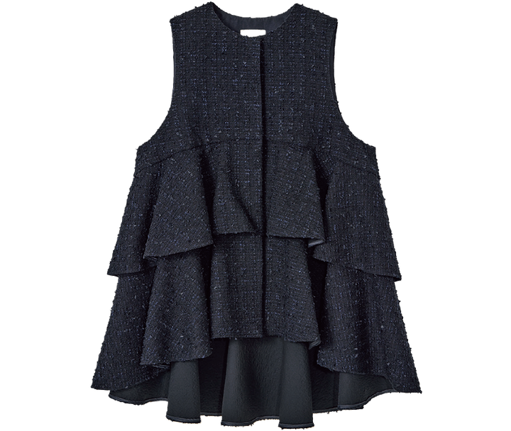 「ツイードも選択肢のひとつ。個人的にはジャケットよりもベストの方が着やすい気がします。形が今っぽくて、ちゃんとフレッシュに見えるところもポイント」