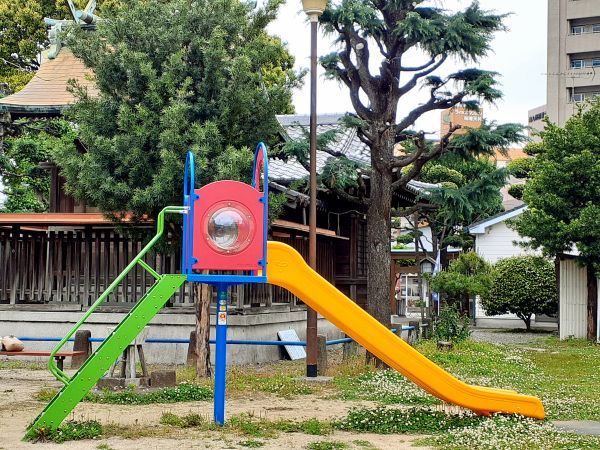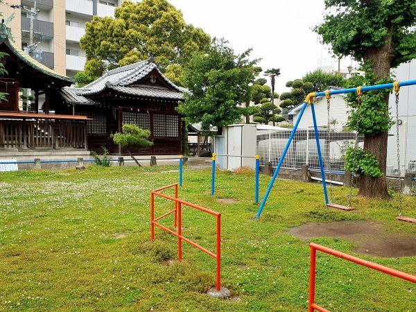 神社の裏には、ひっそりとした小さな公園が広がり、電車通りの喧騒がまるで別世界のように感じられます。