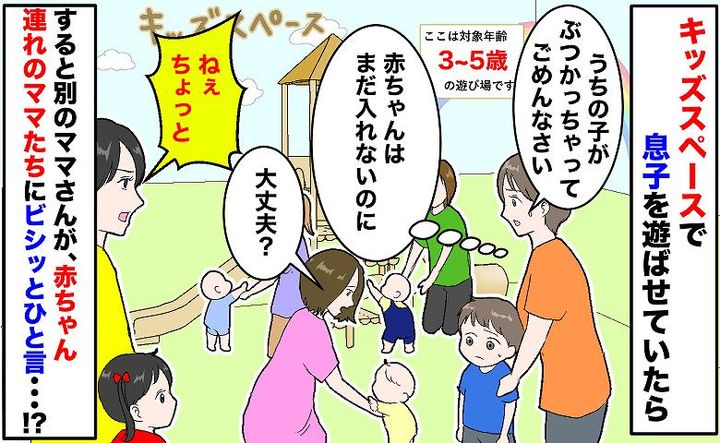 キッズスペースに赤ちゃん…?息子がぶつかり「ごめんなさい」でも私が悪者?すると見知らぬママがビシッとひと言!