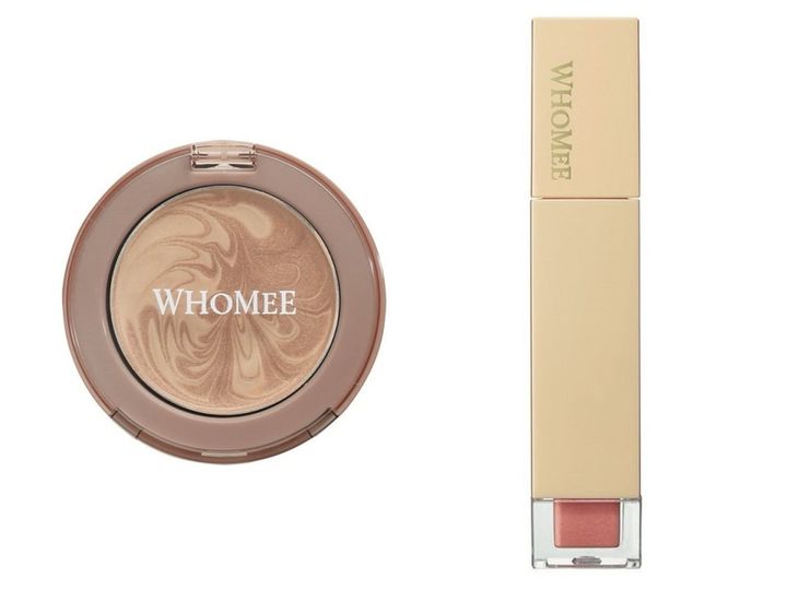 右から:チークをポンポンとのせるのではなく、“描く”を意識した設計にすることで顔立ちの印象を自在に調整。ムースのような質感で、肌なじみのいいピンク。フーミー 描くチーク 含み笑 ¥1,980、繊細な輝きのパールイエローと、華やかにきらめくラメブラウンがマーブル状になったハイライター。しっとり肌に溶け込み、色も質感も浮かずになじむ。フーミー パウダリームグロウペルシャベージュ ¥2,200(共にNuzzle)