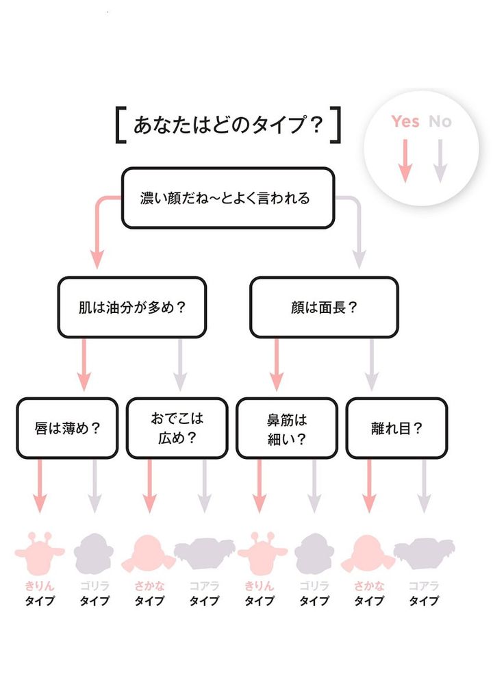 顔の印象が丸みを帯びていて、パーツ全体が中心に寄っているため、余白は多め。骨格の凹凸も少ないため、愛嬌のある印象を与える。年齢を重ねても、あまり老けて見えないタイプ。