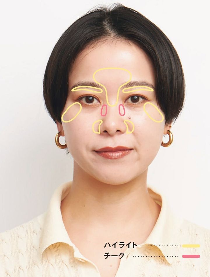 □ ハイライト……広い面で透明感UP、鼻筋は細くしない