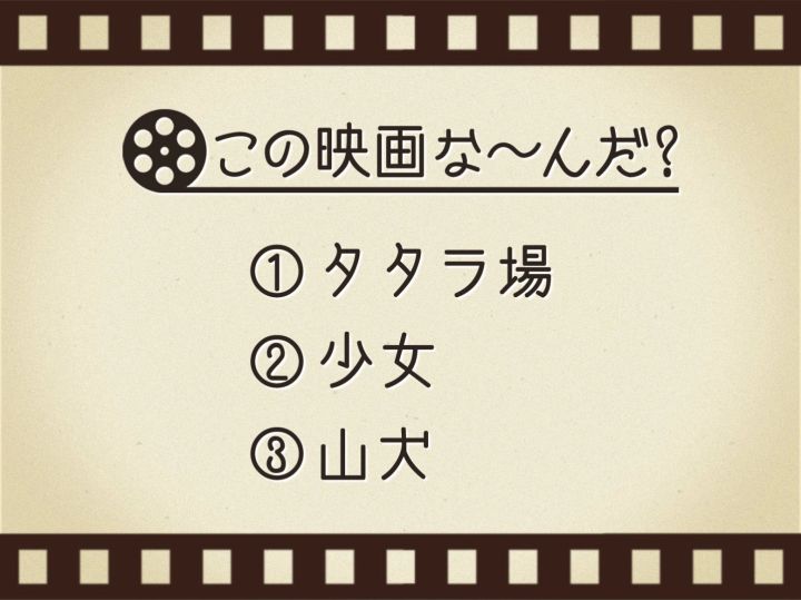 3. 【3つのヒントで映画を当てろ!】「タタラ場・少女・山犬」連想する名作は何でしょう?
