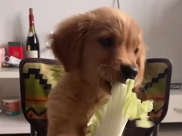 3. シャクシャクがクセになる? 豪快に野菜を食べる子犬さん