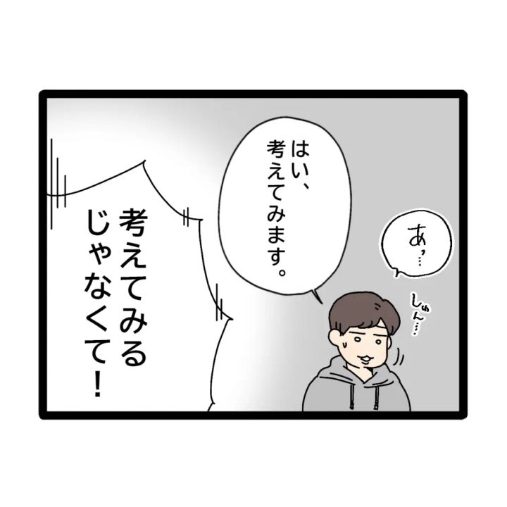 それを聞いたコウタさんはしゅんっとした様子で「あっ・・・はい、考えてみます。」と答えました。