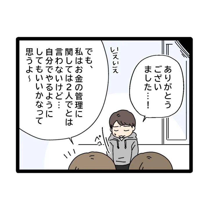 アヤカさんのお母さんは「いえいえ、でも、私はお金の管理に関しては2人でとは言わないけど・・・自分でやるようにしてもいいのかなって思うよ~」とコウタさんにアドバイスをしました。