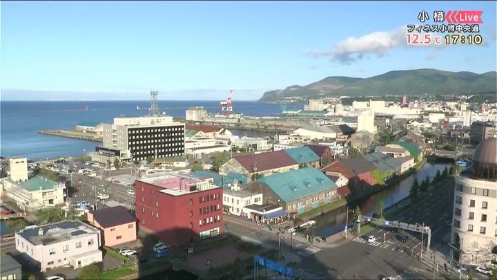 午後5時頃の小樽は穏やかですが、午後2時頃まで雨で路面は濡れていました。きょう26日(月)は雨と風の影響で空気がヒンヤリしました。
