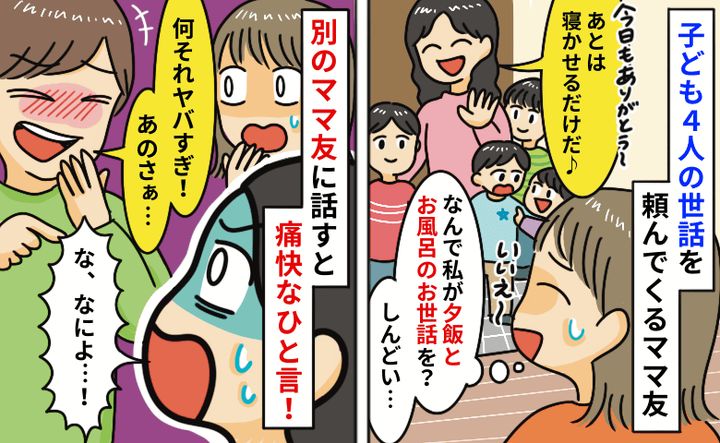 3. 子ども4人の夕飯とお風呂のお世話を押し付けてくるママ友「いつもしんどい…」別のママ友に話した結果
