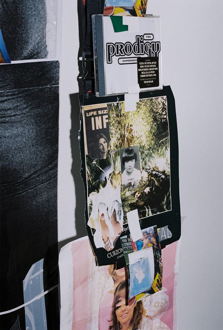会場では2人のコラボレーションアパレルアイテムをはじめ、CONTACT HIGH ZINEの最新号や小町が京都を撮影して制作した新作ZINE「GHOST ACID GIRL SLEEPING ON ZEN GARDEN」、アートワークなどがインスタレーション形式で展示・販売。