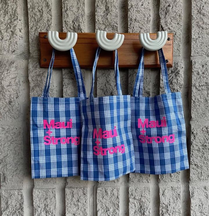 2023年の8月に起きたマウイ島ラハイナの火事の際にはチャリティバッグを発売し、売上は被災者に寄付されました。私も何枚か購入(写真は私物)。泊まっていたホテルのラナイに可愛いフックがあったので掛けてみました。