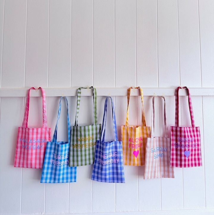月曜日から日曜日までの日替わりトートシリーズは、それぞれのカラーリングも、添えられたハワイにちなんだワードも可愛い♡ 私は金曜日の”ALOHA FRIDAY♡”を予約しました。各40ドル。