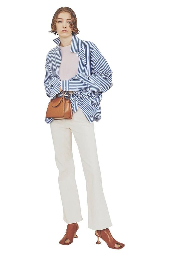 着慣れた定番のスタイルを軸に考えれば、鮮度の高いアイテムも、小物づかいも突飛にならずリアリティのあるバランスに。たとえばほのかに色づくロンTと白デニムのペールトーン。