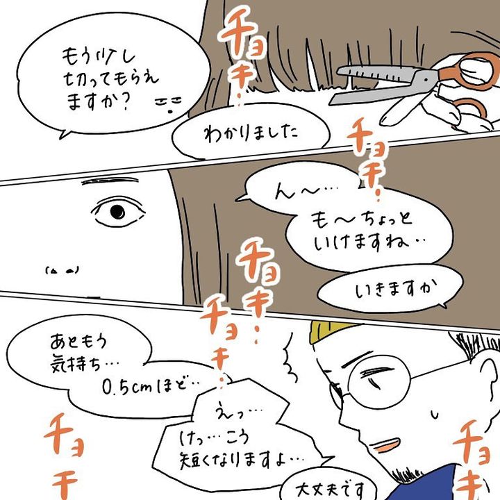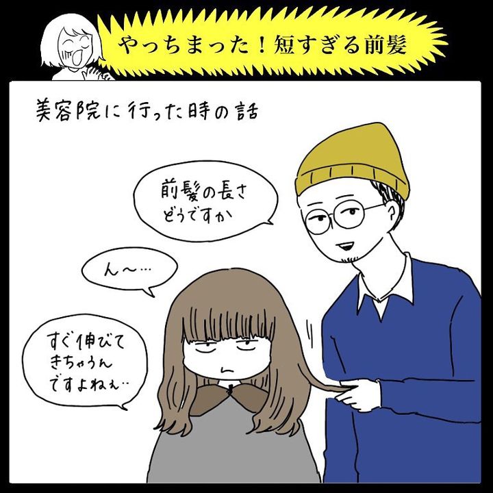 こんにちは!Instagramで日々の暮らしを漫画で紹介している、Web漫画家のmomoです。今日の漫画は、美容院で遭遇した衝撃の体験談!「ちょっとだけ」のつもりが、いつの間にか前髪が短すぎる仕上がりに…。すると美容師さんがとんでもないワザであの有名人を召喚!?一体何が起こったのか、ぜひ漫画をご覧ください♪