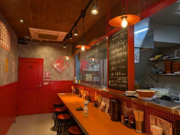真っ赤な店内は、お洒落で明るい雰囲気。