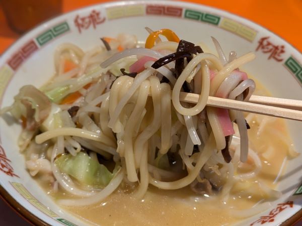 スープを吸った麺は味わい深く、かと言って柔らかくなりすぎず、モチっとした食感がしっかりと残っています。