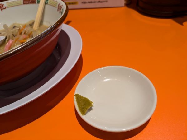 また、口頭で注文すると持ってきていただける「柚子胡椒」(無料)は、入れると鍋のような味わいになり店長のお勧めということでしたので、こちらも試してみました。スープのベースが鶏ガラなので、水炊きのような味わいになり、唯一無二の味わいを楽しむことができました。