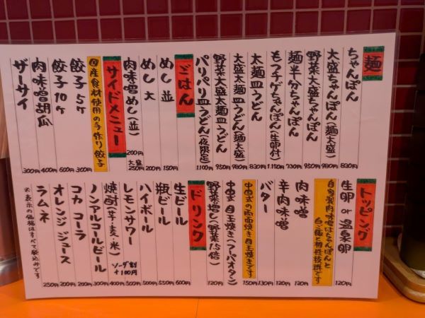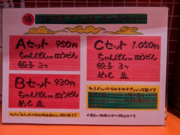 メニューは、ちゃんぽんと皿うどんがメインです。