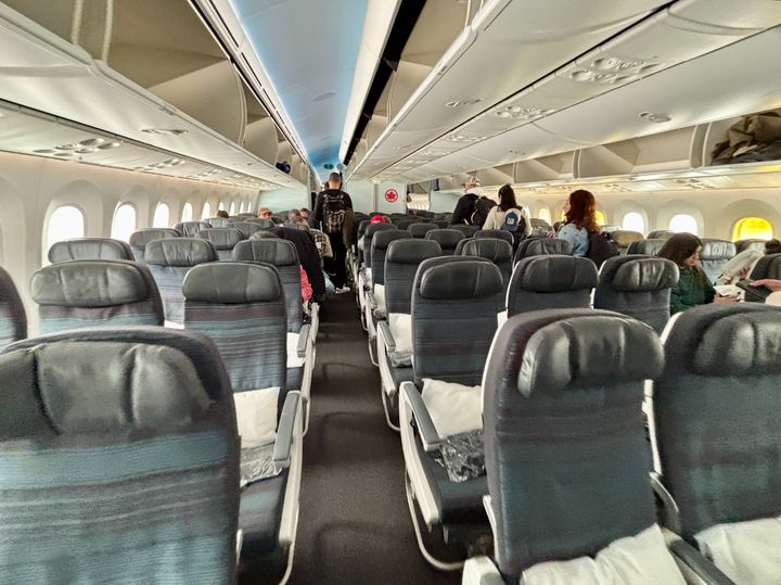 エア・カナダの日本路線に使用されている機材は、2015年以降に導入された最新鋭のボーイング787-9型が主力機になります。エコノミークラスは3‐3‐3配列の広々としたキャビンで、大型の窓が特徴です。