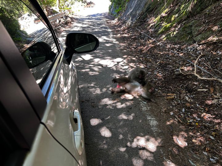 ちなみに余談ですがこの永田いなか浜に向かう途中にある西部林道という道は、道のど真ん中に普通に猿が寝転がって毛つくろいをしているような道ですのでそれも楽しんでみてください。基本は、お猿さまどいてくれるまで待つかたちなのでこの道を、抜けるのに時間がかかりました🙈