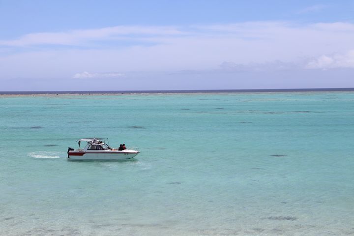 目的の百合ヶ浜に行く時はボートで浅瀬を5分ほど進むのですが海の上を走っても永遠にヨロンブルーの海が続きます