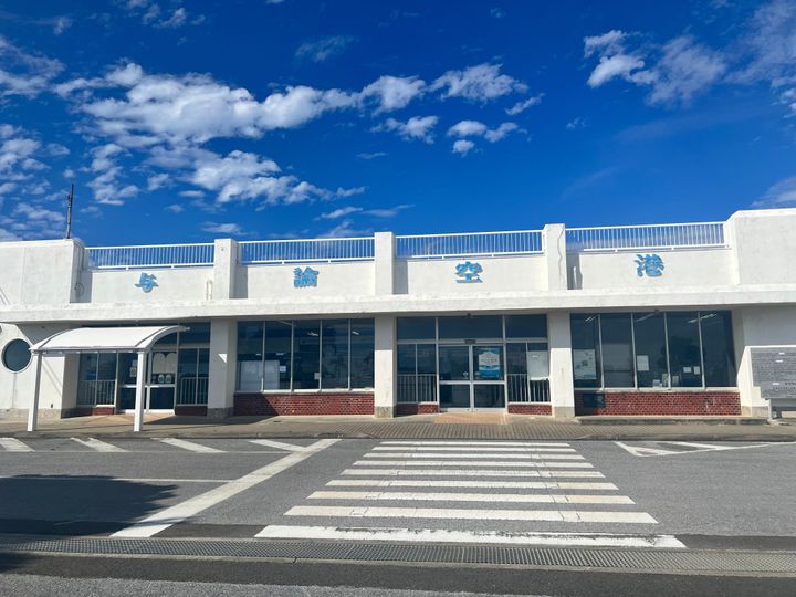 離島の島の空港はみんなこんな感じのミニマムサイズ…!荷物を受け取ってでるとすぐ、空港の外にでれるので便利なところもあります。