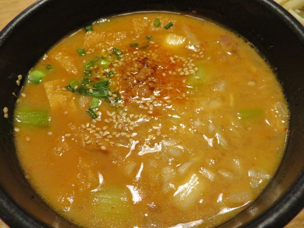ラーメンでは王道ともいえる味噌ですし、名古屋には名物の味噌煮込みうどんもありますが、つけ汁うどんでは初めて。