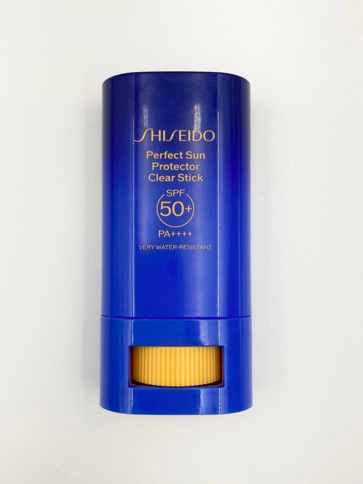 1本持っておくと役に立つ、スティック型の日やけ止め。何より、最も油断しがちで塗り直しも難しい、首回り~フェイスラインに重宝します。今年発売された「SHISEIDO パーフェクト サン プロテクター スティック」は、シンクロシールド™搭載で、熱、汗、水によって防御膜が強くなる仕様。顔にも使用可能で、透明なのでメイクへの影響もありません。アルガンオイルが肌へ潤いを与え、滑らかな仕上がりに。