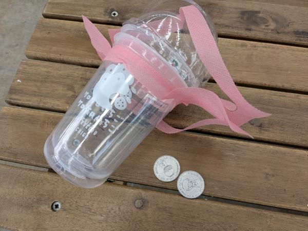 なんと未就学児と小学生のこどもには、お土産イチゴ用のケロケロカップとガチャガチャコインが付いてきます♪ 大人の方も600円でお土産用ケロケロカップのチケットを購入可能。