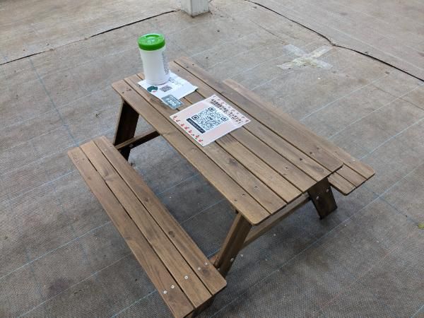 中には座れるイスやテーブル、ウエットティッシュ、手洗い場もあり、子連れにやさしい~