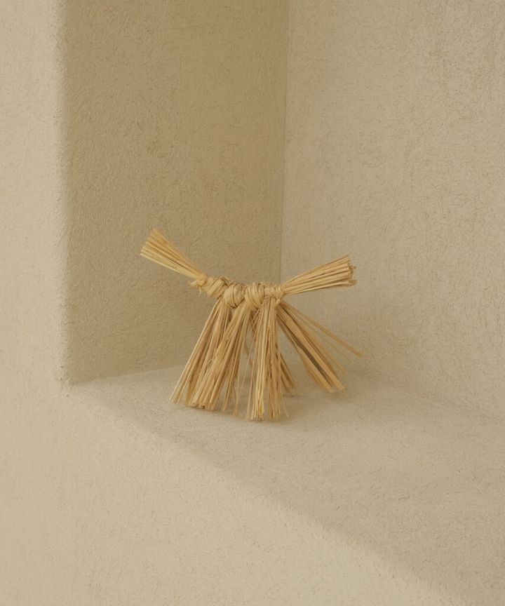 〈Straft〉は、Tamaki IshiiさんとKazuma Yamagamiさんによって結成されたクラフトユニット。伝統的な藁工芸の技術を継承しながら、現代的な表現のかたちを探求。地域に根ざした自然素材とその背景にある文化的な物語に着目し、人と自然の調和を体現する作品づくりを目指している。