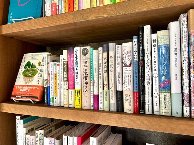 本は、1つの仕切りごとに緩やかにジャンルごとにまとめられてはいるものの、そこには少しだけ雰囲気の異なる本も意図的に混ぜられています。