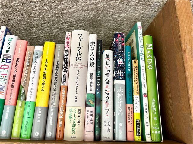 たとえば、昆虫に関する本が集められた棚を見てみると、専門書だけでなく、昆虫をテーマにした絵本やアート関連の本なども並んでいます。