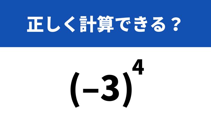 意外に間違える人が多いかも!「−3^4」→正しく計算できる?