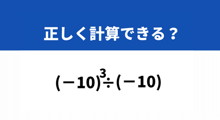 どうやって計算するか覚えてる?「(−10)^3÷(−10)」→正しく計算できる?