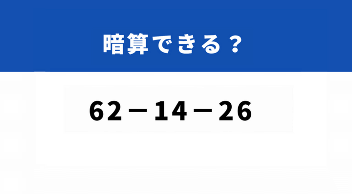 5秒でできたら自慢できる!「62−14−26」→暗算できる?