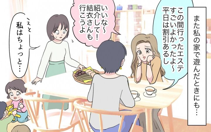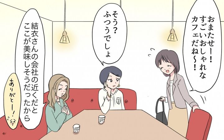 里美たちは自分たちのおしゃれや話題のカフェなどの話ばかり。結衣は少し付き合いに疲れを感じ始めていました。