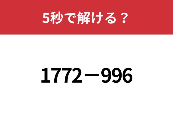3. 暗算で解ける解き方って知ってる?「1772−996」5秒で解ける?