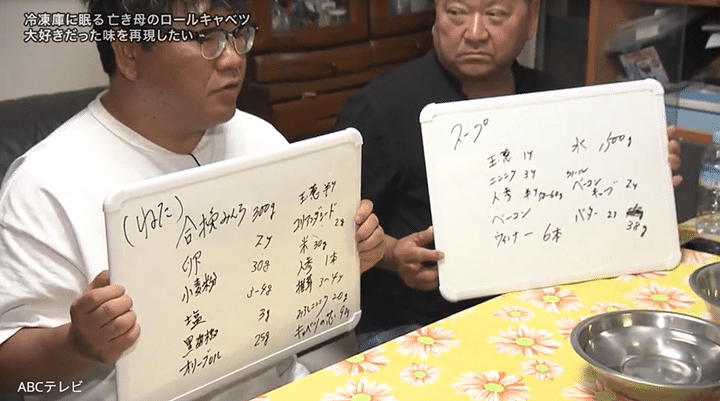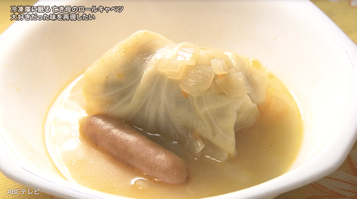 最愛の母を53歳の若さで亡くした25歳の女性が、バラエティ番組『探偵!ナイトスクープ』(ABCテレビ)に依頼者として登場。材料も作り方も全く分からない、亡き母の手作りロールキャベツの完全再現に挑んだ。依頼者が、偶然にも母親の命日前日に作ったロールキャベツは、思い出の味と同じなのか?