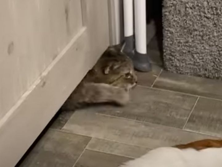 3. 「お腹すいたにゃ」寝室のドアの下をスルリ! 賢すぎる猫さんのごはんタイム