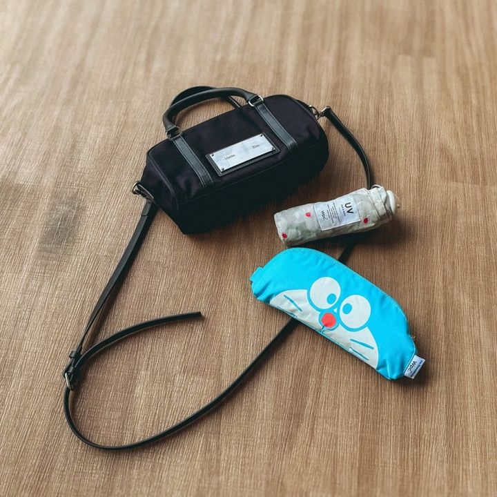 前出のドラえもんと比較してもこの小ささ! 16×5cmのポケットインサイズです。基本は雨傘ですが90%のUVカット機能も備えているので、晴雨兼用として愛用しています。こちらもイージーオープン仕様なので開閉もスムーズ。裏地がない分かさばらないので、ポシェットにこれを入れてもスマホもメイクポーチもお財布も入るところが最高すぎて気に入っています。