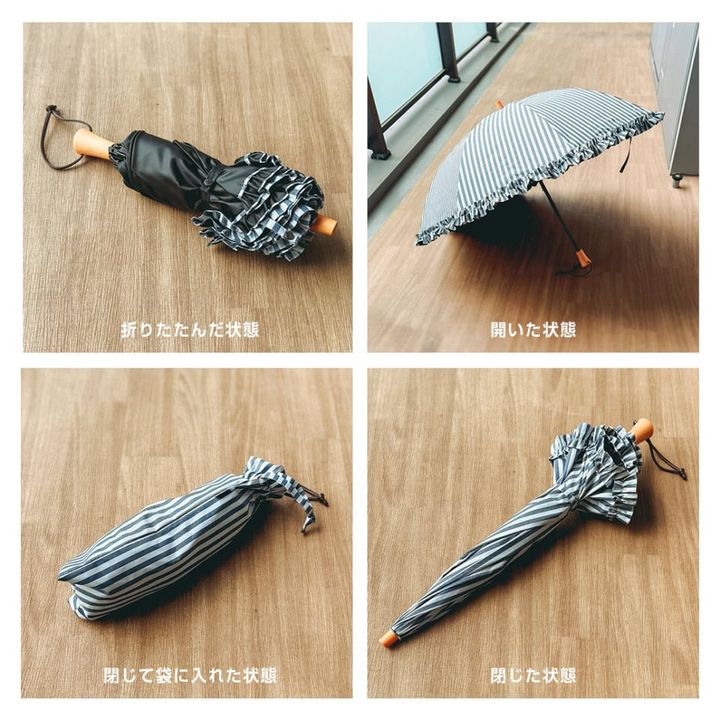 サンバリア 折りたたみ日傘 2段折 フリル / ストライプ ¥14,410
